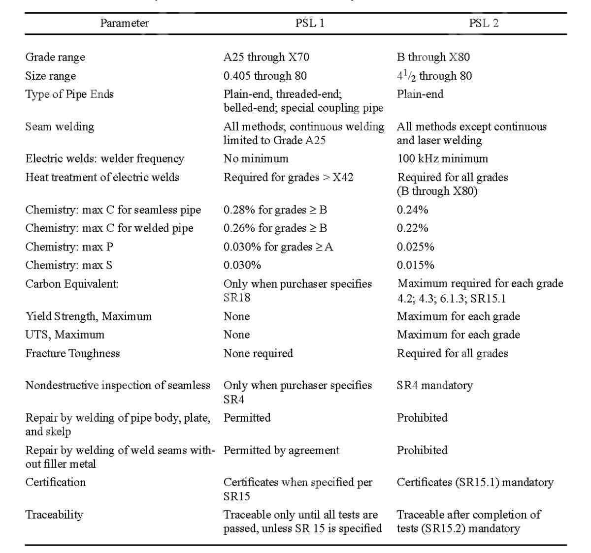 API 5L line pipe (Seamless and welded pipe) of all grades have PSL1 and PSL2 two product specifications, they are different on chemical composition, manufacturing processes, mechanical strength, heat treatment, test records, traceability etc.