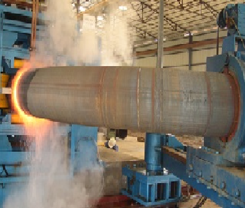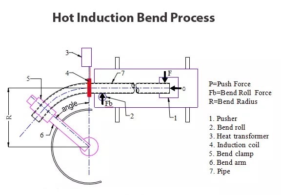 Induction bends manufactured to ASME B16.49 can be either made from seamless or welded pipes with or without tangent length by cold- or heat-forming process. Generally, heat-forming process is applied which utilizes the mid-frequency induction-bending machine. This process utilizes induction heating to heat a narrow band 360 deg around a pipe or cylinder at the point of bending as the pipe or cylinder is being pushed through the inductor coil at a constant velocity. After the material passes through the coil, it may be cooled by forced air or water spray, or it may be allowed to cool in still air. Bends in any producible wall thickness and diameter are covered.
