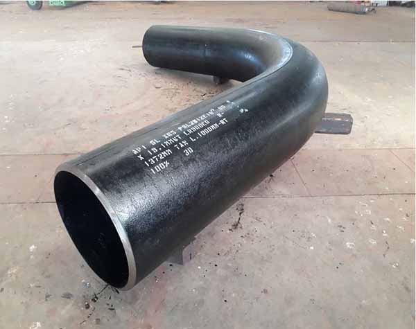 A commonly seen designation 3D, 5D, 6D, 7D, 8D, 9D, etc, denotes the length of its centerline radius. For example, 6″ 5D, the centerline R = 5 x 6″ = 30″ = 762.0 mm. To order an induction bend manufactured to ASME B16.49, some more details are required: seamless or welded, material, with or without tangent, quantity, heat treatment, e.g. 90° Hot-Induction Bend, ASTM A234 WPB, SM LS R=5D 8″ SCH40, with a tangent length=150 mm at each end, bevel end, QT.